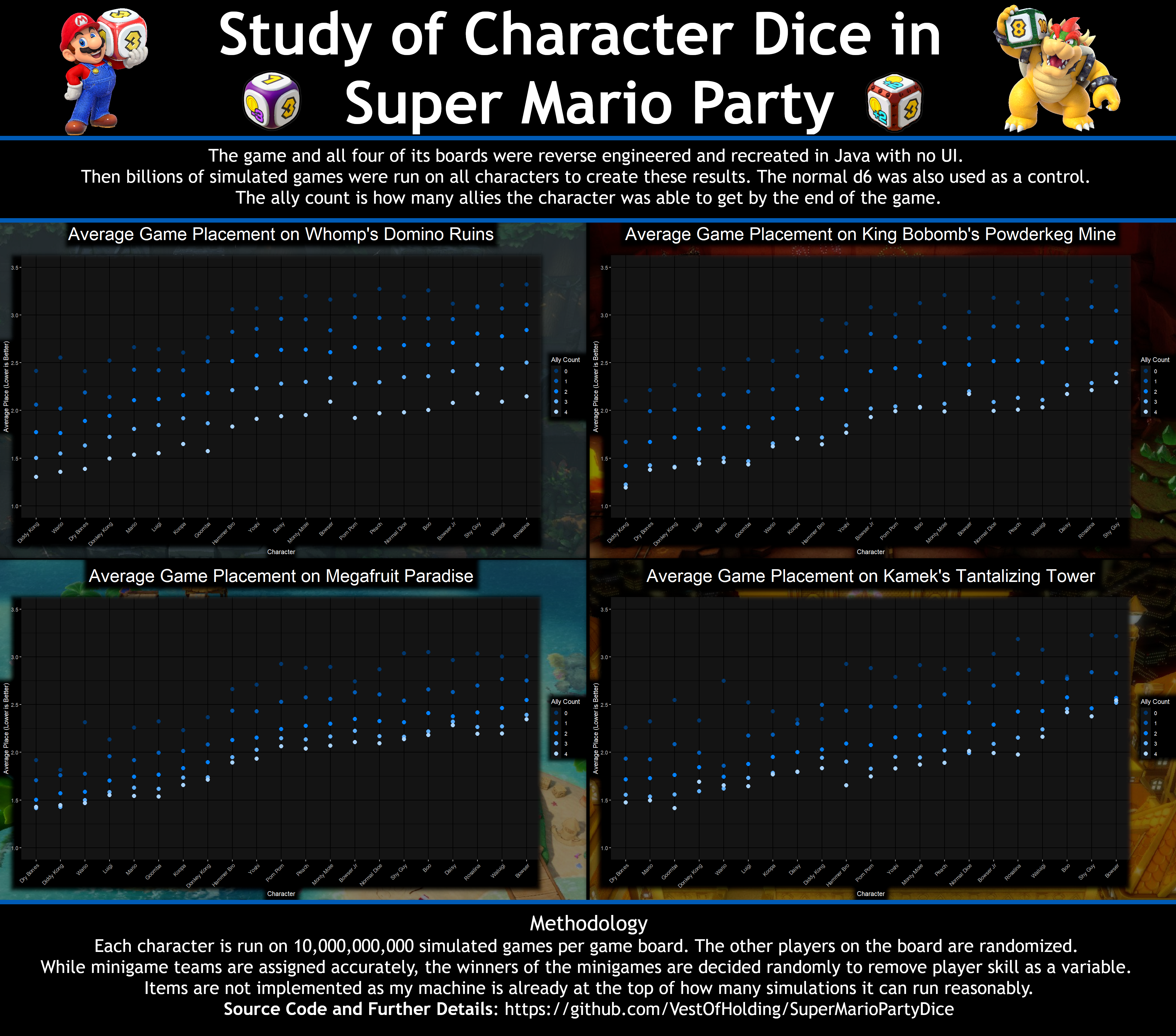 A statistical study of how well different dice perform in the game Super Mario Party.